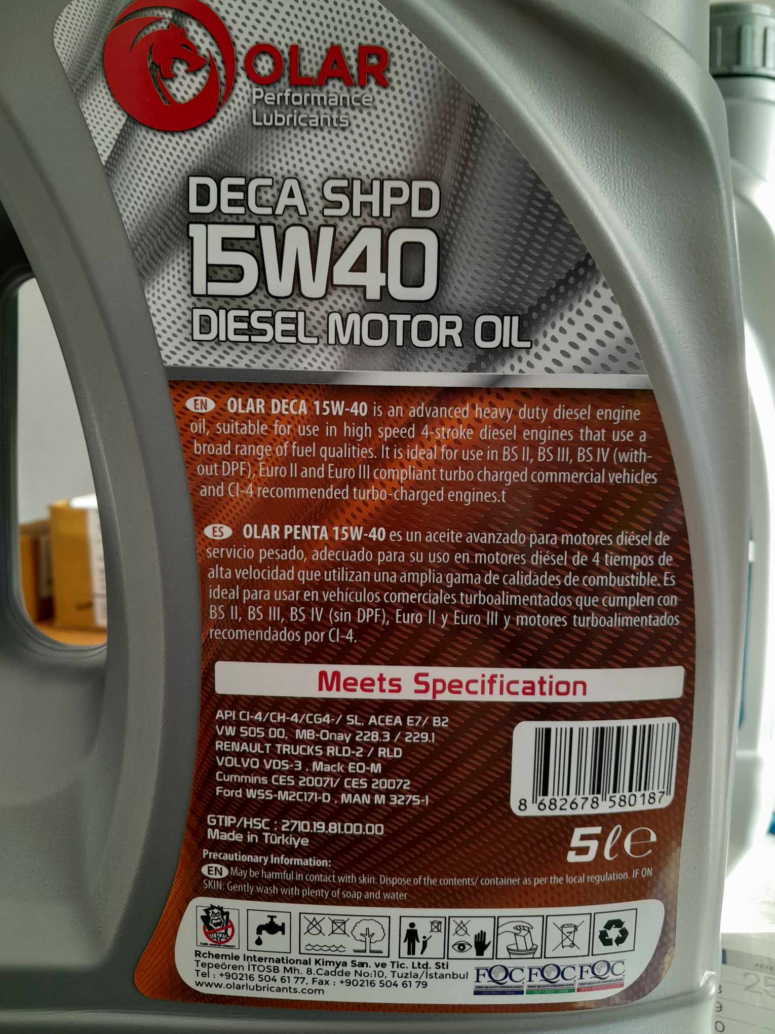 OLAR DECA 15W40 SHPD Huile Moteur Diesel CI-4 Ultra Power pour tous types de moteurs diesel